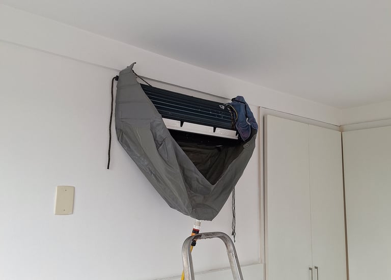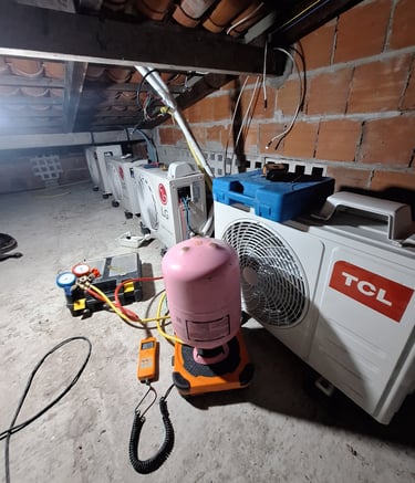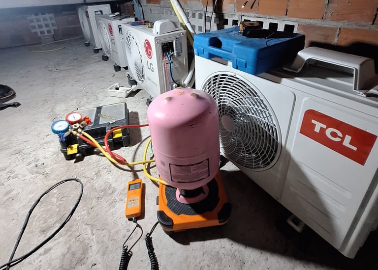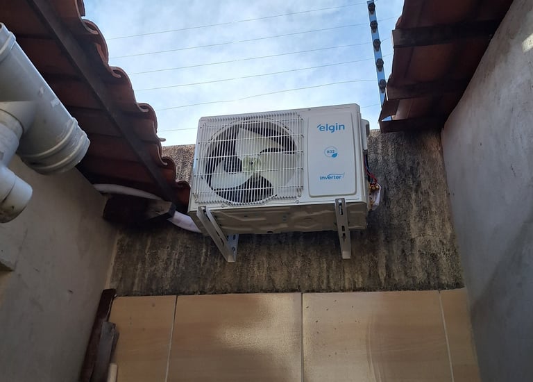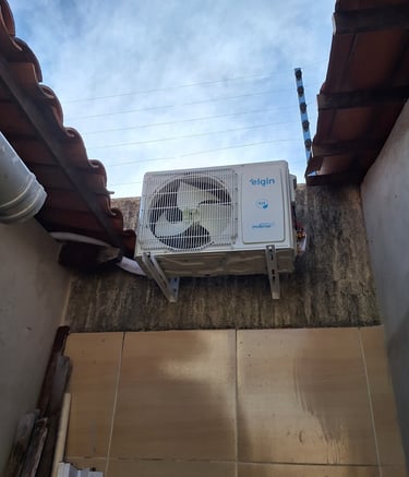 Montagem de ar condicionado seguindo o manual do fabricante.